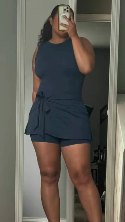 Σχεδιάσαμε αυτό το premium αθλητικό φόρεμα με ενσωματωμένο σορτς και κομψό πλαϊνό άνοιγμα, χρησιμοποιώντας το μοναδικό μας ύφασμα (75% πολυαμίδιο – 25% ελαστάνη) για απόλυτη άνεση και ελευθερία κινήσεων.